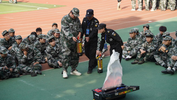 消防安全进军训。11月1日,消防演练在学生公寓开展。随着模拟火情警报的响起,师生迅速反应,沿着安全疏散通道快速、有序撤离至指定安全集结点。在消防器材展示和技能实操环节,工作人员系统讲解了消防器材的操作规范与使用方法。师生代表分组使用仿真灭火器进行实操,直面火源、精准喷射、成功扑灭模拟火焰。