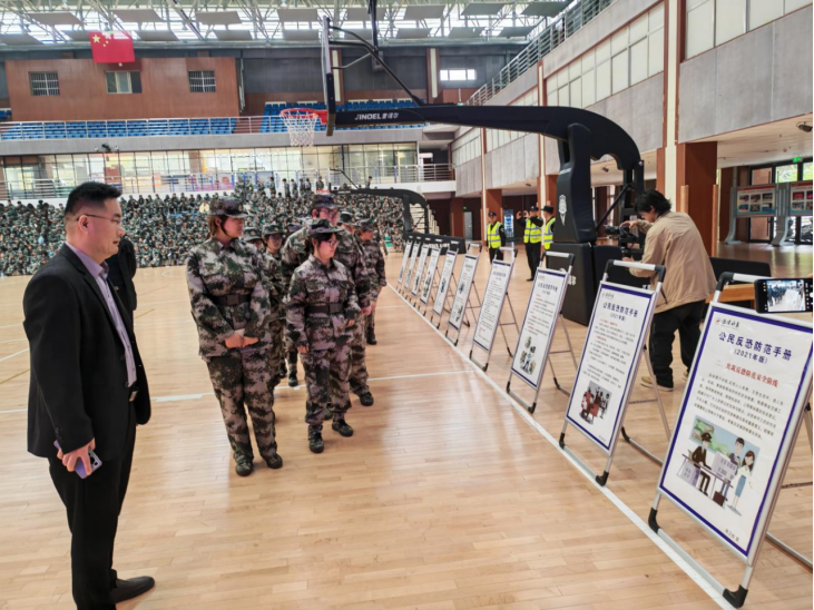 反恐防暴宣传进军训。活动现场通过展板、宣传手册等形式,让学生了解了暴恐犯罪的严重危害与反恐防暴工作的重要性。民警结合实际案例,讲解应急处置、识别恐怖嫌疑人及常见袭击方式等知识,提升了学生应对暴恐事件的自我保护能力。