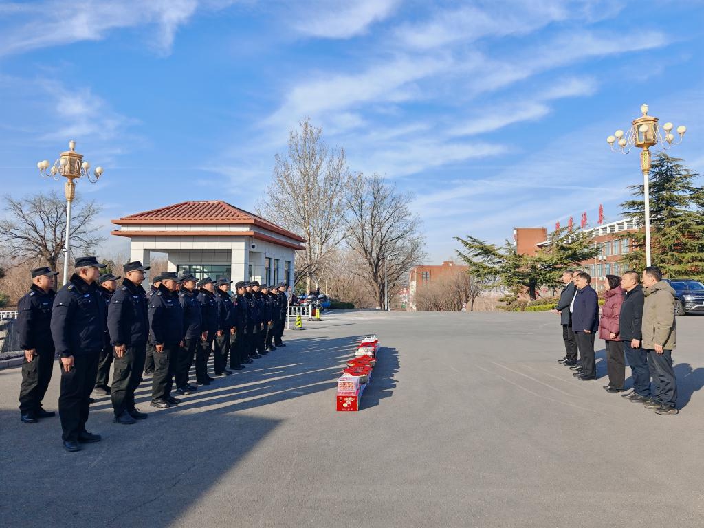 在南门值班岗,满军代表学校党委和行政,向值守人员致以诚挚的新春问候和美好祝福。他表示,过去一年,全体安保、后勤人员为保障校园安全、维护师生学习生活秩序付出了辛勤努力,为学校各项工作的扎实推进提供了坚实保障。满军祝愿大家在新的一年里身体健康、阖家幸福,并勉励大家在新的一年里戮力同心、锐意进取,共同推动学校高质量发展,携手书写学校事业新篇章。