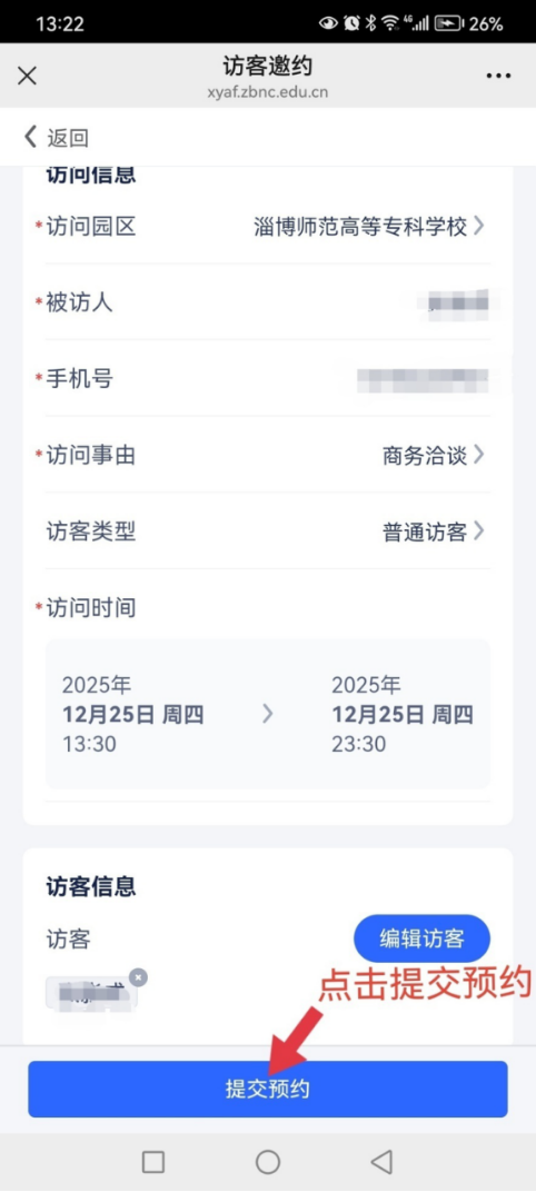 10.点击“提交预约”