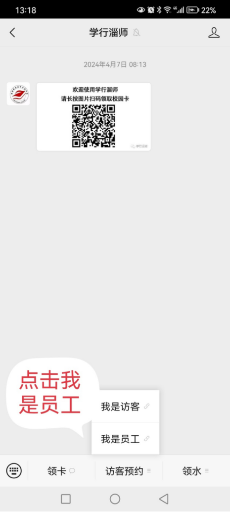 首次进入需个人信息注册(之后就不需要了):进入“学行淄师”--选择“访客预约”—选择“我是员工”,进入高校安全管理平台注册。(学工号即为各位老师的个人学工号,密码统一初始为Abc135++,登录后会要求修改,请各位老师保存好。其中原作为班主任通过宿管模块登陆过高校安全管理平台的老师可跳过本项目,直接用步骤五,用个人宿管密码直接登录。)