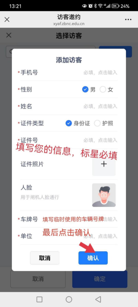 9.选择添加的访客,点击“确认”